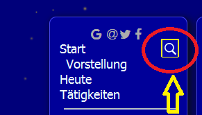 Oben links, unter den sozialen 'Bookmarks, kann man beim 'Klick auf die kleine Lupe die Texte der Website durchsuchen, z.B. die verschiedenen Blogbeiträge.